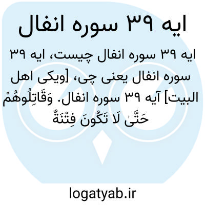 [ویکی اهل البیت] آیه 39 سوره انفال. وَقَاتِلُوهُمْ حَتَّیٰ لَا تَکُونَ فِتْنَةٌ وَیَکُونَ الدِّینُ کُلُّهُ لِلَّهِ ۚ فَإِنِ انْتَهَوْا فَإِنَّ اللَّهَ بِمَا یَعْمَلُونَ بَصِیرٌ