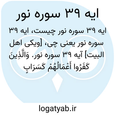 [ویکی اهل البیت] آیه 39 سوره نور. وَالَّذِینَ کَفَرُوا أَعْمَالُهُمْ کَسَرَابٍ بِقِیعَةٍ یَحْسَبُهُ الظَّمْآنُ مَاءً حَتَّیٰ إِذَا جَاءَهُ لَمْ یَجِدْهُ شَیْئًا وَوَجَدَ اللَّهَ عِنْدَهُ فَوَفَّاهُ حِسَابَهُ ۗ وَاللَّهُ سَرِیعُ الْحِسَابِ