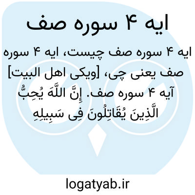 [ویکی اهل البیت] آیه 4 سوره صف. إِنَّ اللَّهَ یُحِبُّ الَّذِینَ یُقَاتِلُونَ فِی سَبِیلِهِ صَفًّا کَأَنَّهُمْ بُنْیَانٌ مَرْصُوصٌ