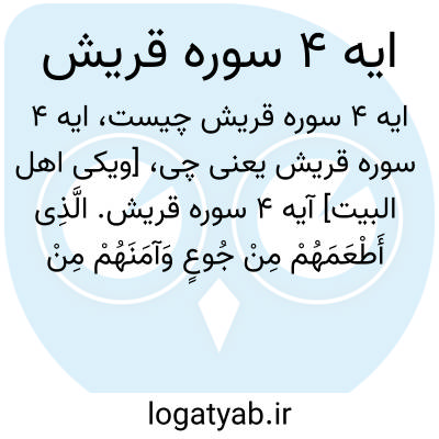 [ویکی اهل البیت] آیه 4 سوره قریش. الَّذِی أَطْعَمَهُمْ مِنْ جُوعٍ وَآمَنَهُمْ مِنْ خَوْفٍ