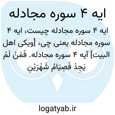 [ویکی اهل البیت] آیه 4 سوره مجادله. فَمَنْ لَمْ یَجِدْ فَصِیَامُ شَهْرَیْنِ مُتَتَابِعَیْنِ مِنْ قَبْلِ أَنْ یَتَمَاسَّا ۖ فَمَنْ لَمْ یَسْتَطِعْ فَإِطْعَامُ سِتِّینَ مِسْکِینًا ۚ ذَٰلِکَ لِتُؤْمِنُوا بِاللَّهِ وَرَسُولِهِ ۚ وَتِلْکَ حُدُودُ اللَّهِ ۗ وَلِلْکَافِرِینَ عَذَابٌ أَلِیمٌ
