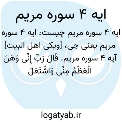 [ویکی اهل البیت] آیه 4 سوره مریم. قَالَ رَبِّ إِنِّی وَهَنَ الْعَظْمُ مِنِّی وَاشْتَعَلَ الرَّأْسُ شَیْبًا وَلَمْ أَکُنْ بِدُعَائِکَ رَبِّ شَقِیًّا