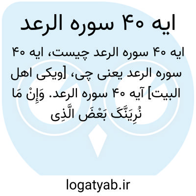 [ویکی اهل البیت] آیه 40 سوره الرعد. وَإِنْ مَا نُرِیَنَّکَ بَعْضَ الَّذِی نَعِدُهُمْ أَوْ نَتَوَفَّیَنَّکَ فَإِنَّمَا عَلَیْکَ الْبَلَاغُ وَعَلَیْنَا الْحِسَابُ