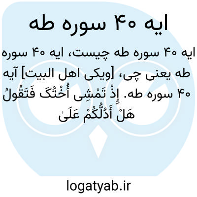 [ویکی اهل البیت] آیه 40 سوره طه. إِذْ تَمْشِی أُخْتُکَ فَتَقُولُ هَلْ أَدُلُّکُمْ عَلَیٰ مَنْ یَکْفُلُهُ ۖ فَرَجَعْنَاکَ إِلَیٰ أُمِّکَ کَیْ تَقَرَّ عَیْنُهَا وَلَا تَحْزَنَ ۚ وَقَتَلْتَ نَفْسًا فَنَجَّیْنَاکَ مِنَ الْغَمِّ وَفَتَنَّاکَ فُتُونًا ۚ فَلَبِثْتَ سِنِینَ فِی أَهْلِ مَدْیَنَ ثُمَّ جِئْتَ عَلَیٰ قَدَرٍ یَا مُوسَیٰ