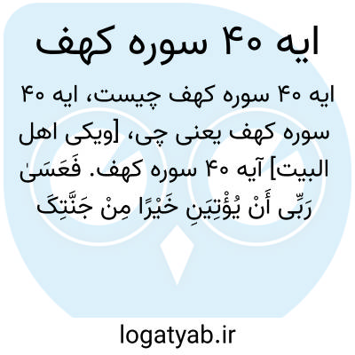 [ویکی اهل البیت] آیه 40 سوره کهف. فَعَسَیٰ رَبِّی أَنْ یُؤْتِیَنِ خَیْرًا مِنْ جَنَّتِکَ وَیُرْسِلَ عَلَیْهَا حُسْبَانًا مِنَ السَّمَاءِ فَتُصْبِحَ صَعِیدًا زَلَقًا