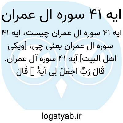 [ویکی اهل البیت] آیه 41 سوره آل عمران. قَالَ رَبِّ اجْعَلْ لِی آیَةً ۖ قَالَ آیَتُکَ أَلَّا تُکَلِّمَ النَّاسَ ثَلَاثَةَ أَیَّامٍ إِلَّا رَمْزًا ۗ وَاذْکُرْ رَبَّکَ کَثِیرًا وَسَبِّحْ بِالْعَشِیِّ وَالْإِبْکَارِ