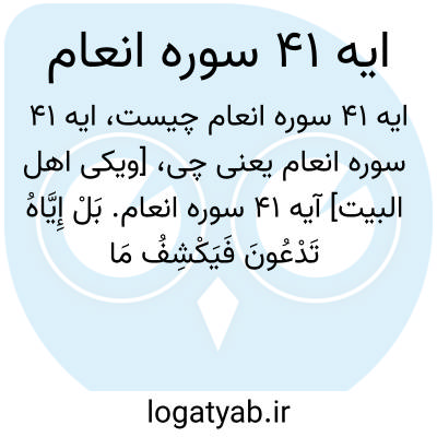 [ویکی اهل البیت] آیه 41 سوره انعام. بَلْ إِیَّاهُ تَدْعُونَ فَیَکْشِفُ مَا تَدْعُونَ إِلَیْهِ إِنْ شَاءَ وَتَنْسَوْنَ مَا تُشْرِکُونَ