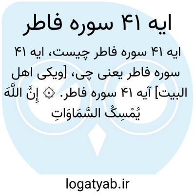 [ویکی اهل البیت] آیه 41 سوره فاطر. ۞ إِنَّ اللَّهَ یُمْسِکُ السَّمَاوَاتِ وَالْأَرْضَ أَنْ تَزُولَا ۚ وَلَئِنْ زَالَتَا إِنْ أَمْسَکَهُمَا مِنْ أَحَدٍ مِنْ بَعْدِهِ ۚ إِنَّهُ کَانَ حَلِیمًا غَفُورًا