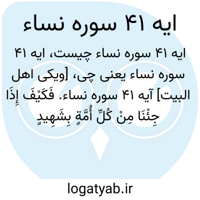 [ویکی اهل البیت] آیه 41 سوره نساء. فَکَیْفَ إِذَا جِئْنَا مِنْ کُلِّ أُمَّةٍ بِشَهِیدٍ وَجِئْنَا بِکَ عَلَیٰ هَٰؤُلَاءِ شَهِیدًا