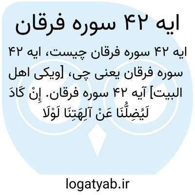 [ویکی اهل البیت] آیه 42 سوره فرقان. إِنْ کَادَ لَیُضِلُّنَا عَنْ آلِهَتِنَا لَوْلَا أَنْ صَبَرْنَا عَلَیْهَا ۚ وَسَوْفَ یَعْلَمُونَ حِینَ یَرَوْنَ الْعَذَابَ مَنْ أَضَلُّ سَبِیلًا