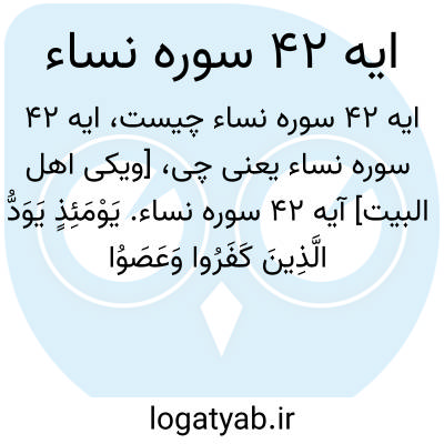 [ویکی اهل البیت] آیه 42 سوره نساء. یَوْمَئِذٍ یَوَدُّ الَّذِینَ کَفَرُوا وَعَصَوُا الرَّسُولَ لَوْ تُسَوَّیٰ بِهِمُ الْأَرْضُ وَلَا یَکْتُمُونَ اللَّهَ حَدِیثًا
