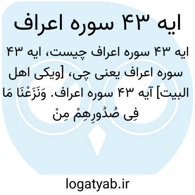 [ویکی اهل البیت] آیه 43 سوره اعراف. وَنَزَعْنَا مَا فِی صُدُورِهِمْ مِنْ غِلٍّ تَجْرِی مِنْ تَحْتِهِمُ الْأَنْهَارُ ۖ وَقَالُوا الْحَمْدُ لِلَّهِ الَّذِی هَدَانَا لِهَٰذَا وَمَا کُنَّا لِنَهْتَدِیَ لَوْلَا أَنْ هَدَانَا اللَّهُ ۖ لَقَدْ جَاءَتْ رُسُلُ رَبِّنَا بِالْحَقِّ ۖ وَنُودُوا أَنْ تِلْکُمُ الْجَنَّةُ أُورِثْتُمُوهَا بِمَا کُنْتُمْ تَعْمَلُونَ