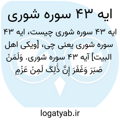 [ویکی اهل البیت] آیه 43 سوره شوری. وَلَمَنْ صَبَرَ وَغَفَرَ إِنَّ ذَٰلِکَ لَمِنْ عَزْمِ الْأُمُورِ