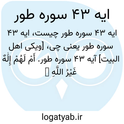 [ویکی اهل البیت] آیه 43 سوره طور. أَمْ لَهُمْ إِلَٰهٌ غَیْرُ اللَّهِ ۚ سُبْحَانَ اللَّهِ عَمَّا یُشْرِکُونَ