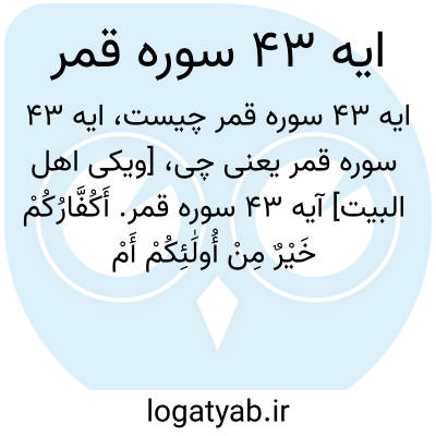 [ویکی اهل البیت] آیه 43 سوره قمر. أَکُفَّارُکُمْ خَیْرٌ مِنْ أُولَٰئِکُمْ أَمْ لَکُمْ بَرَاءَةٌ فِی الزُّبُرِ