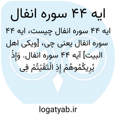 [ویکی اهل البیت] آیه 44 سوره انفال. وَإِذْ یُرِیکُمُوهُمْ إِذِ الْتَقَیْتُمْ فِی أَعْیُنِکُمْ قَلِیلًا وَیُقَلِّلُکُمْ فِی أَعْیُنِهِمْ لِیَقْضِیَ اللَّهُ أَمْرًا کَانَ مَفْعُولًا ۗ وَإِلَی اللَّهِ تُرْجَعُ الْأُمُورُ