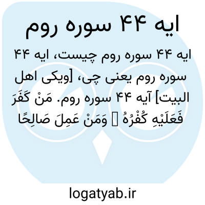 [ویکی اهل البیت] آیه 44 سوره روم. مَنْ کَفَرَ فَعَلَیْهِ کُفْرُهُ ۖ وَمَنْ عَمِلَ صَالِحًا فَلِأَنْفُسِهِمْ یَمْهَدُونَ