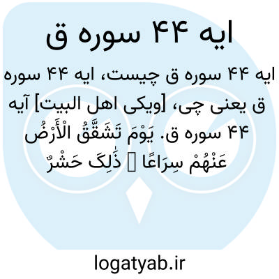 [ویکی اهل البیت] آیه 44 سوره ق. یَوْمَ تَشَقَّقُ الْأَرْضُ عَنْهُمْ سِرَاعًا ۚ ذَٰلِکَ حَشْرٌ عَلَیْنَا یَسِیرٌ