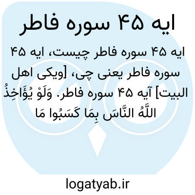 [ویکی اهل البیت] آیه 45 سوره فاطر. وَلَوْ یُؤَاخِذُ اللَّهُ النَّاسَ بِمَا کَسَبُوا مَا تَرَکَ عَلَیٰ ظَهْرِهَا مِنْ دَابَّةٍ وَلَٰکِنْ یُؤَخِّرُهُمْ إِلَیٰ أَجَلٍ مُسَمًّی ۖ فَإِذَا جَاءَ أَجَلُهُمْ فَإِنَّ اللَّهَ کَانَ بِعِبَادِهِ بَصِیرًا
