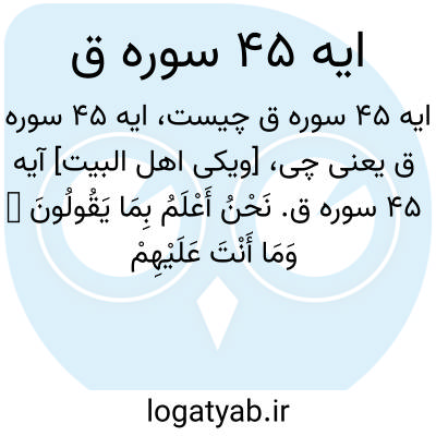 [ویکی اهل البیت] آیه 45 سوره ق. نَحْنُ أَعْلَمُ بِمَا یَقُولُونَ ۖ وَمَا أَنْتَ عَلَیْهِمْ بِجَبَّارٍ ۖ فَذَکِّرْ بِالْقُرْآنِ مَنْ یَخَافُ وَعِیدِ
