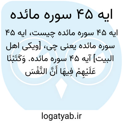 [ویکی اهل البیت] آیه 45 سوره مائده. وَکَتَبْنَا عَلَیْهِمْ فِیهَا أَنَّ النَّفْسَ بِالنَّفْسِ وَالْعَیْنَ بِالْعَیْنِ وَالْأَنْفَ بِالْأَنْفِ وَالْأُذُنَ بِالْأُذُنِ وَالسِّنَّ بِالسِّنِّ وَالْجُرُوحَ قِصَاصٌ ۚ فَمَنْ تَصَدَّقَ بِهِ فَهُوَ کَفَّارَةٌ لَهُ ۚ وَمَنْ لَمْ یَحْکُمْ بِمَا أَنْزَلَ اللَّهُ فَأُولَٰئِکَ هُمُ الظَّالِمُونَ