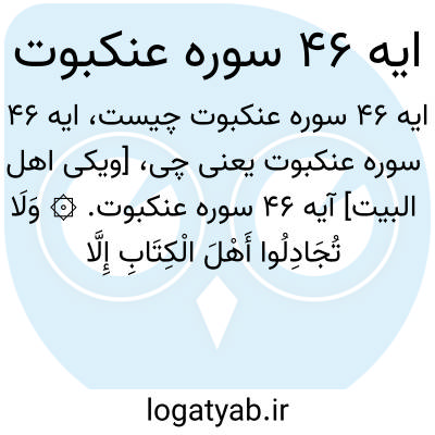 [ویکی اهل البیت] آیه 46 سوره عنکبوت. ۞ وَلَا تُجَادِلُوا أَهْلَ الْکِتَابِ إِلَّا بِالَّتِی هِیَ أَحْسَنُ إِلَّا الَّذِینَ ظَلَمُوا مِنْهُمْ ۖ وَقُولُوا آمَنَّا بِالَّذِی أُنْزِلَ إِلَیْنَا وَأُنْزِلَ إِلَیْکُمْ وَإِلَٰهُنَا وَإِلَٰهُکُمْ وَاحِدٌ وَنَحْنُ لَهُ مُسْلِمُونَ