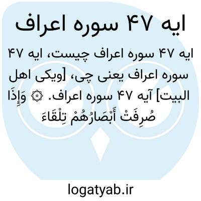 [ویکی اهل البیت] آیه 47 سوره اعراف. ۞ وَإِذَا صُرِفَتْ أَبْصَارُهُمْ تِلْقَاءَ أَصْحَابِ النَّارِ قَالُوا رَبَّنَا لَا تَجْعَلْنَا مَعَ الْقَوْمِ الظَّالِمِینَ