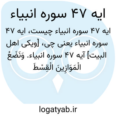 [ویکی اهل البیت] آیه 47 سوره انبیاء. وَنَضَعُ الْمَوَازِینَ الْقِسْطَ لِیَوْمِ الْقِیَامَةِ فَلَا تُظْلَمُ نَفْسٌ شَیْئًا ۖ وَإِنْ کَانَ مِثْقَالَ حَبَّةٍ مِنْ خَرْدَلٍ أَتَیْنَا بِهَا ۗ وَکَفَیٰ بِنَا حَاسِبِینَ