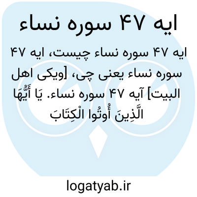 [ویکی اهل البیت] آیه 47 سوره نساء. یَا أَیُّهَا الَّذِینَ أُوتُوا الْکِتَابَ آمِنُوا بِمَا نَزَّلْنَا مُصَدِّقًا لِمَا مَعَکُمْ مِنْ قَبْلِ أَنْ نَطْمِسَ وُجُوهًا فَنَرُدَّهَا عَلَیٰ أَدْبَارِهَا أَوْ نَلْعَنَهُمْ کَمَا لَعَنَّا أَصْحَابَ السَّبْتِ ۚ وَکَانَ أَمْرُ اللَّهِ مَفْعُولًا