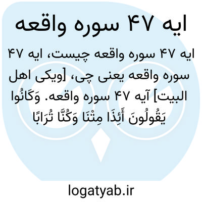 [ویکی اهل البیت] آیه 47 سوره واقعه. وَکَانُوا یَقُولُونَ أَئِذَا مِتْنَا وَکُنَّا تُرَابًا وَعِظَامًا أَإِنَّا لَمَبْعُوثُونَ