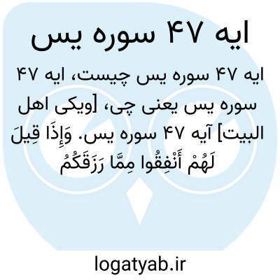 [ویکی اهل البیت] آیه 47 سوره یس. وَإِذَا قِیلَ لَهُمْ أَنْفِقُوا مِمَّا رَزَقَکُمُ اللَّهُ قَالَ الَّذِینَ کَفَرُوا لِلَّذِینَ آمَنُوا أَنُطْعِمُ مَنْ لَوْ یَشَاءُ اللَّهُ أَطْعَمَهُ إِنْ أَنْتُمْ إِلَّا فِی ضَلَالٍ مُبِینٍ