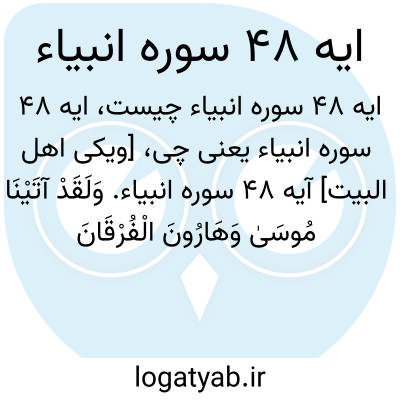 [ویکی اهل البیت] آیه 48 سوره انبیاء. وَلَقَدْ آتَیْنَا مُوسَیٰ وَهَارُونَ الْفُرْقَانَ وَضِیَاءً وَذِکْرًا لِلْمُتَّقِینَ