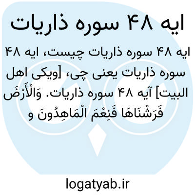 [ویکی اهل البیت] آیه 48 سوره ذاریات. وَالْأَرْضَ فَرَشْنَاهَا فَنِعْمَ الْمَاهِدُونَ