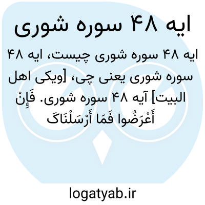 [ویکی اهل البیت] آیه 48 سوره شوری. فَإِنْ أَعْرَضُوا فَمَا أَرْسَلْنَاکَ عَلَیْهِمْ حَفِیظًا ۖ إِنْ عَلَیْکَ إِلَّا الْبَلَاغُ ۗ وَإِنَّا إِذَا أَذَقْنَا الْإِنْسَانَ مِنَّا رَحْمَةً فَرِحَ بِهَا ۖ وَإِنْ تُصِبْهُمْ سَیِّئَةٌ بِمَا قَدَّمَتْ أَیْدِیهِمْ فَإِنَّ الْإِنْسَانَ کَفُورٌ