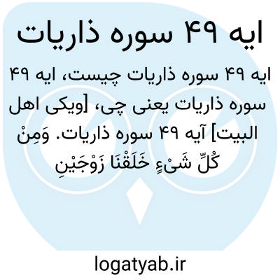 [ویکی اهل البیت] آیه 49 سوره ذاریات. وَمِنْ کُلِّ شَیْءٍ خَلَقْنَا زَوْجَیْنِ لَعَلَّکُمْ تَذَکَّرُونَ