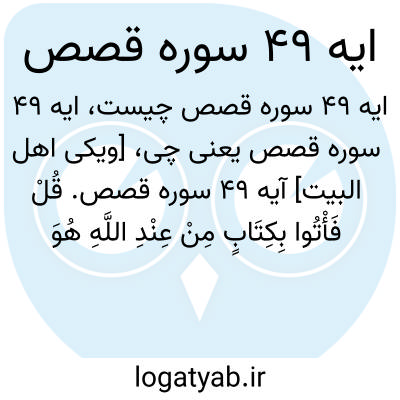 [ویکی اهل البیت] آیه 49 سوره قصص. قُلْ فَأْتُوا بِکِتَابٍ مِنْ عِنْدِ اللَّهِ هُوَ أَهْدَیٰ مِنْهُمَا أَتَّبِعْهُ إِنْ کُنْتُمْ صَادِقِینَ