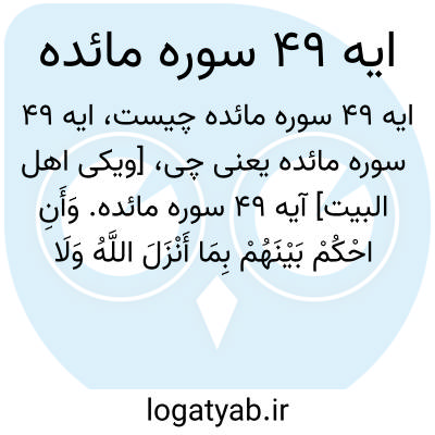 [ویکی اهل البیت] آیه 49 سوره مائده. وَأَنِ احْکُمْ بَیْنَهُمْ بِمَا أَنْزَلَ اللَّهُ وَلَا تَتَّبِعْ أَهْوَاءَهُمْ وَاحْذَرْهُمْ أَنْ یَفْتِنُوکَ عَنْ بَعْضِ مَا أَنْزَلَ اللَّهُ إِلَیْکَ ۖ فَإِنْ تَوَلَّوْا فَاعْلَمْ أَنَّمَا یُرِیدُ اللَّهُ أَنْ یُصِیبَهُمْ بِبَعْضِ ذُنُوبِهِمْ ۗ وَإِنَّ کَثِیرًا مِنَ النَّاسِ لَفَاسِقُونَ