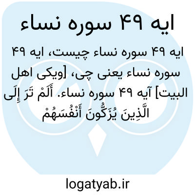 [ویکی اهل البیت] آیه 49 سوره نساء. أَلَمْ تَرَ إِلَی الَّذِینَ یُزَکُّونَ أَنْفُسَهُمْ ۚ بَلِ اللَّهُ یُزَکِّی مَنْ یَشَاءُ وَلَا یُظْلَمُونَ فَتِیلًا