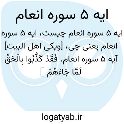 [ویکی اهل البیت] آیه 5 سوره انعام. فَقَدْ کَذَّبُوا بِالْحَقِّ لَمَّا جَاءَهُمْ ۖ فَسَوْفَ یَأْتِیهِمْ أَنْبَاءُ مَا کَانُوا بِهِ یَسْتَهْزِئُونَ