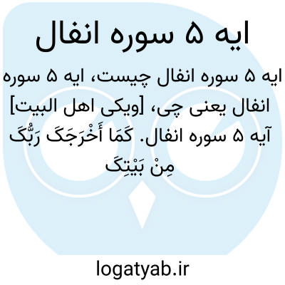 [ویکی اهل البیت] آیه 5 سوره انفال. کَمَا أَخْرَجَکَ رَبُّکَ مِنْ بَیْتِکَ بِالْحَقِّ وَإِنَّ فَرِیقًا مِنَ الْمُؤْمِنِینَ لَکَارِهُونَ