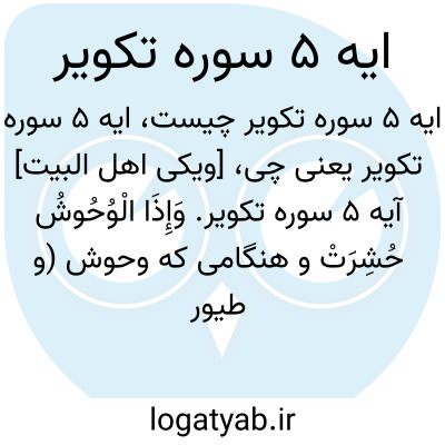 [ویکی اهل البیت] آیه 5 سوره تکویر. وَإِذَا الْوُحُوشُ حُشِرَتْ