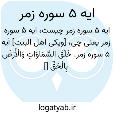 [ویکی اهل البیت] آیه 5 سوره زمر. خَلَقَ السَّمَاوَاتِ وَالْأَرْضَ بِالْحَقِّ ۖ یُکَوِّرُ اللَّیْلَ عَلَی النَّهَارِ وَیُکَوِّرُ النَّهَارَ عَلَی اللَّیْلِ ۖ وَسَخَّرَ الشَّمْسَ وَالْقَمَرَ ۖ کُلٌّ یَجْرِی لِأَجَلٍ مُسَمًّی ۗ أَلَا هُوَ الْعَزِیزُ الْغَفَّارُ
