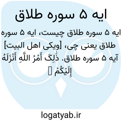[ویکی اهل البیت] آیه 5 سوره طلاق. ذَٰلِکَ أَمْرُ اللَّهِ أَنْزَلَهُ إِلَیْکُمْ ۚ وَمَنْ یَتَّقِ اللَّهَ یُکَفِّرْ عَنْهُ سَیِّئَاتِهِ وَیُعْظِمْ لَهُ أَجْرًا
