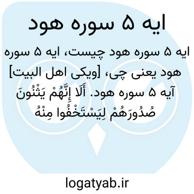 [ویکی اهل البیت] آیه 5 سوره هود. أَلَا إِنَّهُمْ یَثْنُونَ صُدُورَهُمْ لِیَسْتَخْفُوا مِنْهُ ۚ أَلَا حِینَ یَسْتَغْشُونَ ثِیَابَهُمْ یَعْلَمُ مَا یُسِرُّونَ وَمَا یُعْلِنُونَ ۚ إِنَّهُ عَلِیمٌ بِذَاتِ الصُّدُورِ