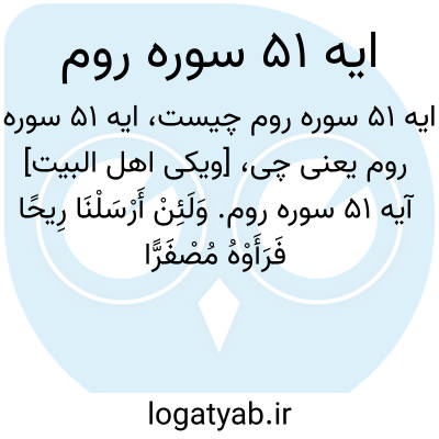 [ویکی اهل البیت] آیه 51 سوره روم. وَلَئِنْ أَرْسَلْنَا رِیحًا فَرَأَوْهُ مُصْفَرًّا لَظَلُّوا مِنْ بَعْدِهِ یَکْفُرُونَ