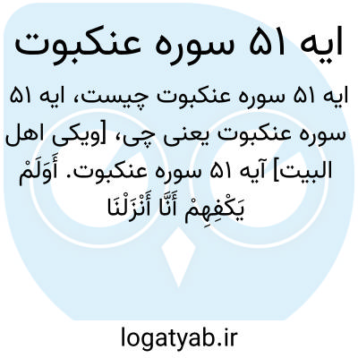 [ویکی اهل البیت] آیه 51 سوره عنکبوت. أَوَلَمْ یَکْفِهِمْ أَنَّا أَنْزَلْنَا عَلَیْکَ الْکِتَابَ یُتْلَیٰ عَلَیْهِمْ ۚ إِنَّ فِی ذَٰلِکَ لَرَحْمَةً وَذِکْرَیٰ لِقَوْمٍ یُؤْمِنُونَ