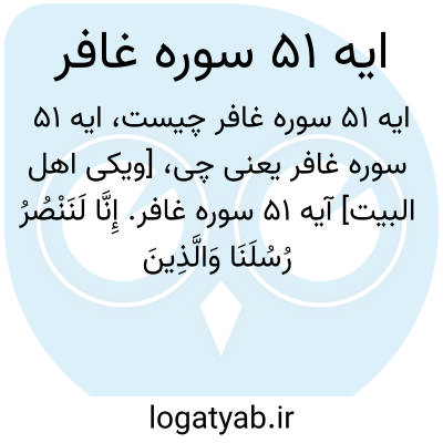 [ویکی اهل البیت] آیه 51 سوره غافر. إِنَّا لَنَنْصُرُ رُسُلَنَا وَالَّذِینَ آمَنُوا فِی الْحَیَاةِ الدُّنْیَا وَیَوْمَ یَقُومُ الْأَشْهَادُ