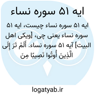 [ویکی اهل البیت] آیه 51 سوره نساء. أَلَمْ تَرَ إِلَی الَّذِینَ أُوتُوا نَصِیبًا مِنَ الْکِتَابِ یُؤْمِنُونَ بِالْجِبْتِ وَالطَّاغُوتِ وَیَقُولُونَ لِلَّذِینَ کَفَرُوا هَٰؤُلَاءِ أَهْدَیٰ مِنَ الَّذِینَ آمَنُوا سَبِیلًا