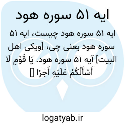 [ویکی اهل البیت] آیه 51 سوره هود. یَا قَوْمِ لَا أَسْأَلُکُمْ عَلَیْهِ أَجْرًا ۖ إِنْ أَجْرِیَ إِلَّا عَلَی الَّذِی فَطَرَنِی ۚ أَفَلَا تَعْقِلُونَ