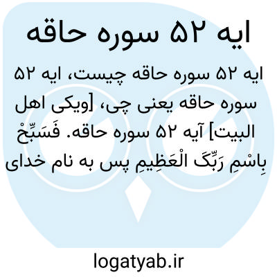 [ویکی اهل البیت] آیه 52 سوره حاقه. فَسَبِّحْ بِاسْمِ رَبِّکَ الْعَظِیمِ